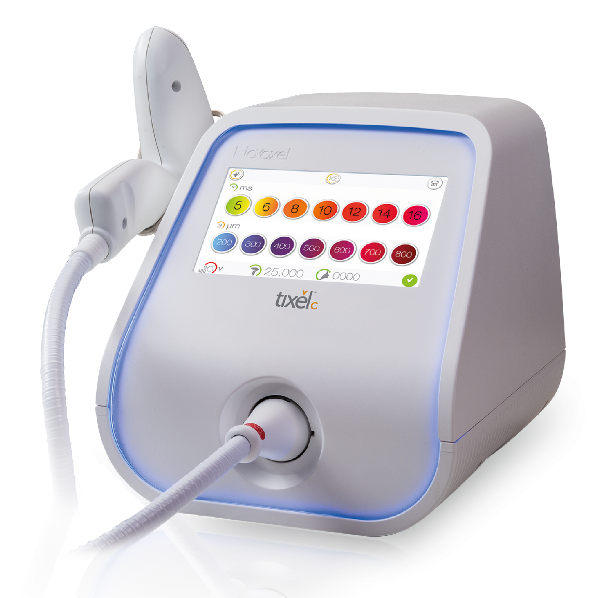 TIXEL® nos permite la entrega controlada de calor puro y libre de Radiación a través del contacto de su tip de titanio con la piel del paciente durante breves milisegundos.